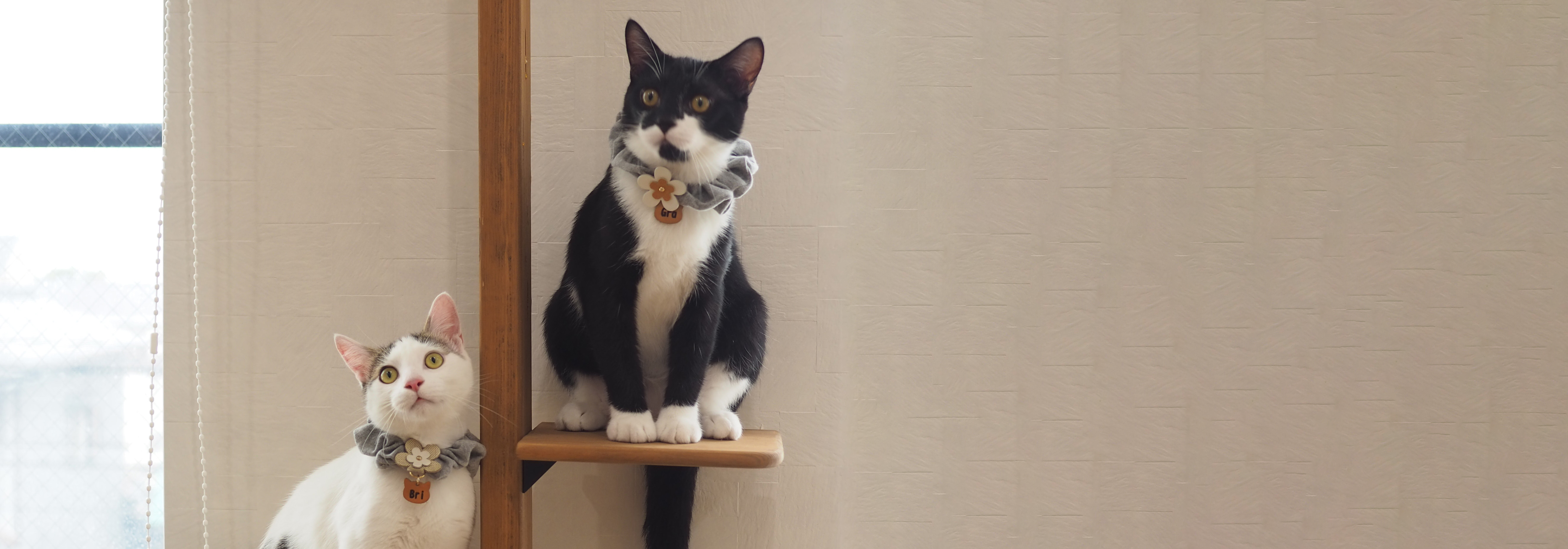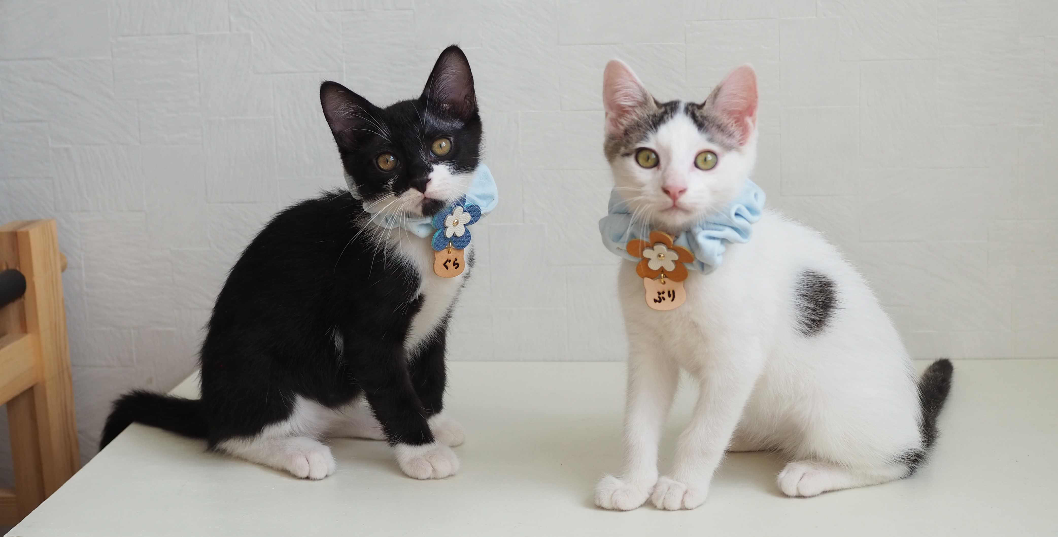 我が社に迎えた保護猫「ブリ」と「グラ」の名前をブランド名にした、「Bri & Gra」。このブランドでは、グッズの売上の一部を保護猫活動に寄付し、支援を行っています。
