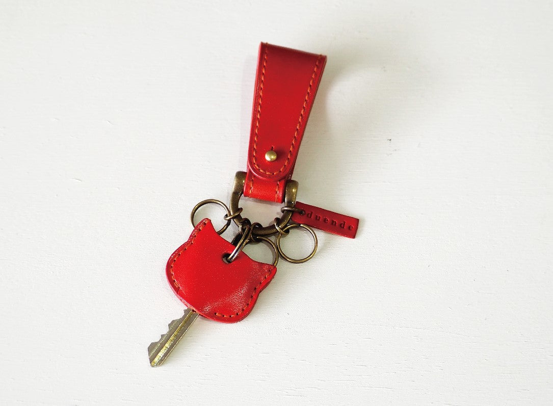 栃木レザーで仕立てた ねこ型キーカバー