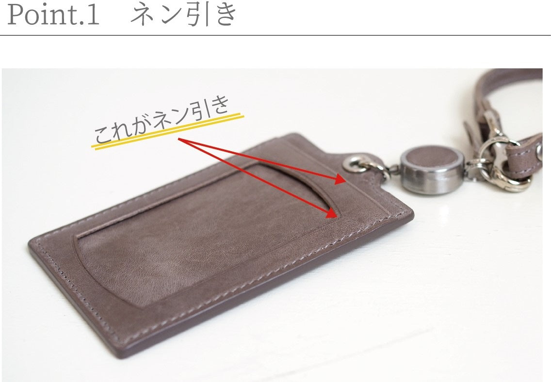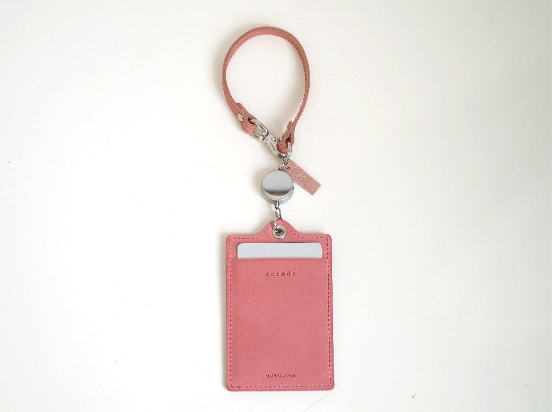 くすんだ色味が可愛い "モストロレザー"を使用したリール付きパスケース。