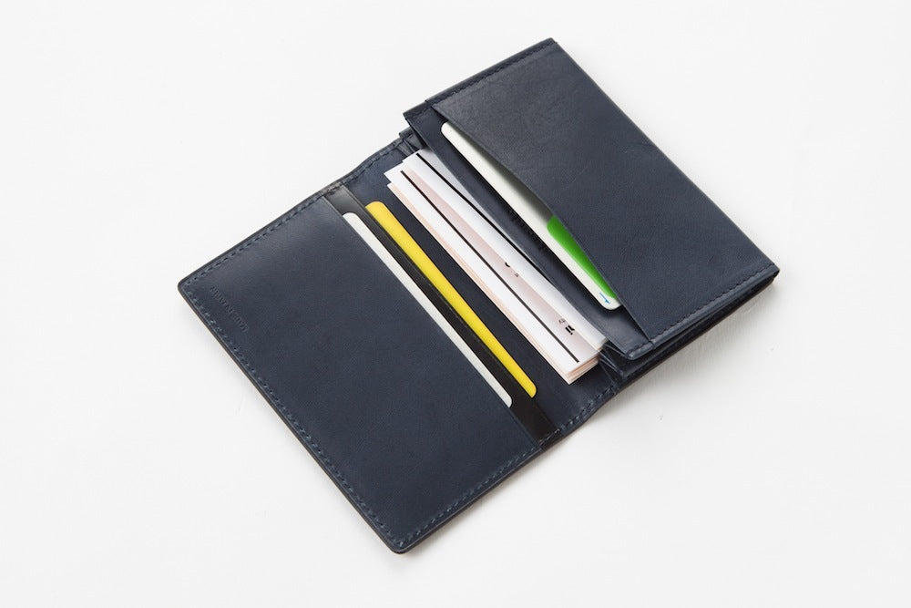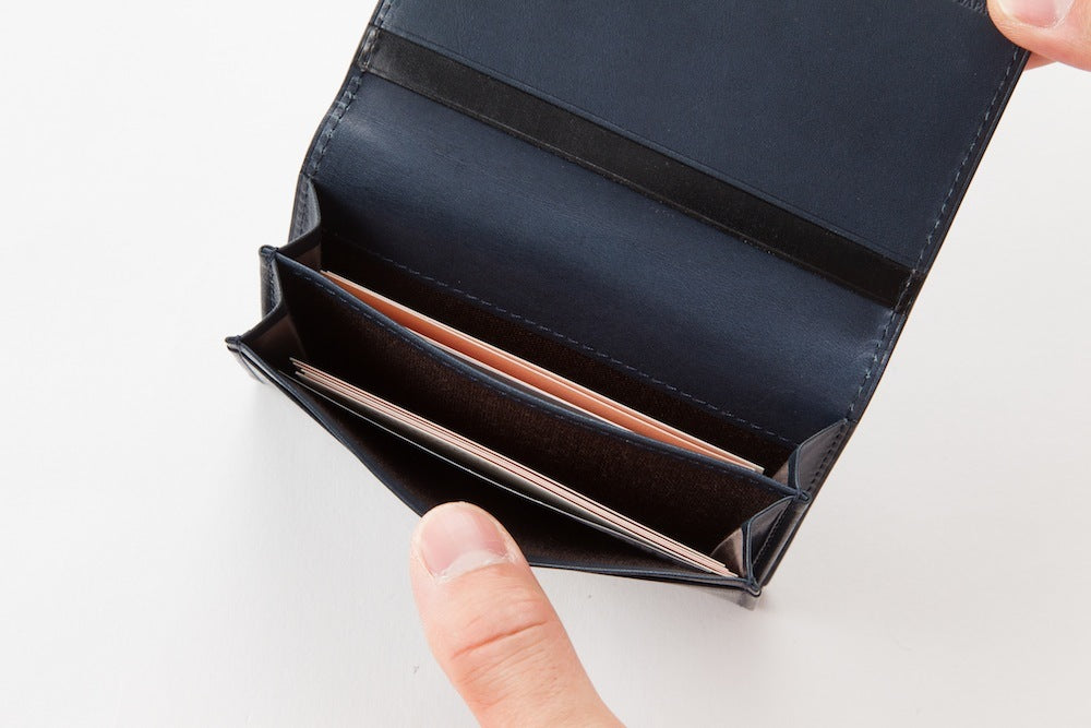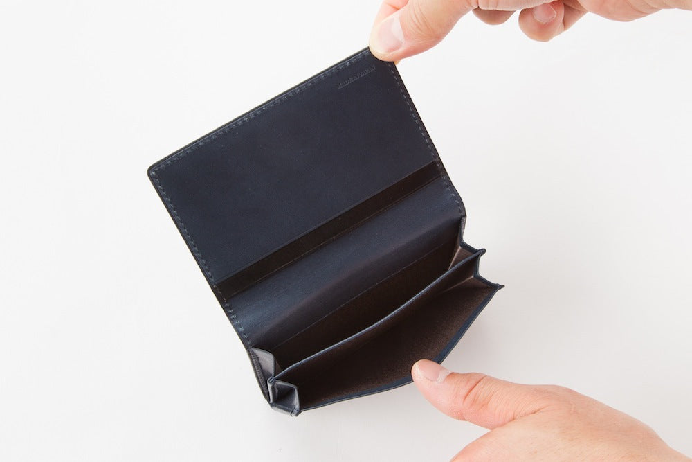 カード段の1段目に表と同じブライドルレザーを使用。