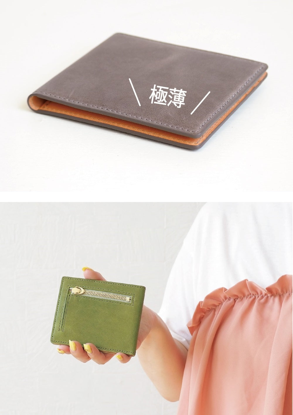 マチ付きの小銭入れ用のファスナーポケット付きで 超薄型ながら使い勝手も抜群!