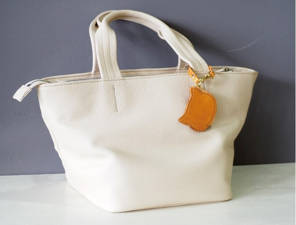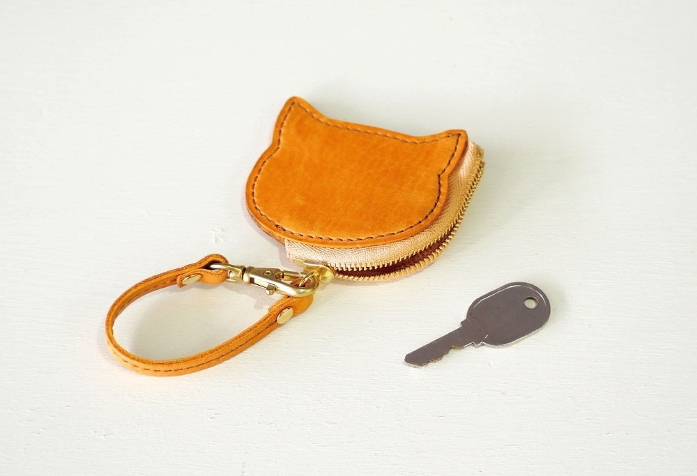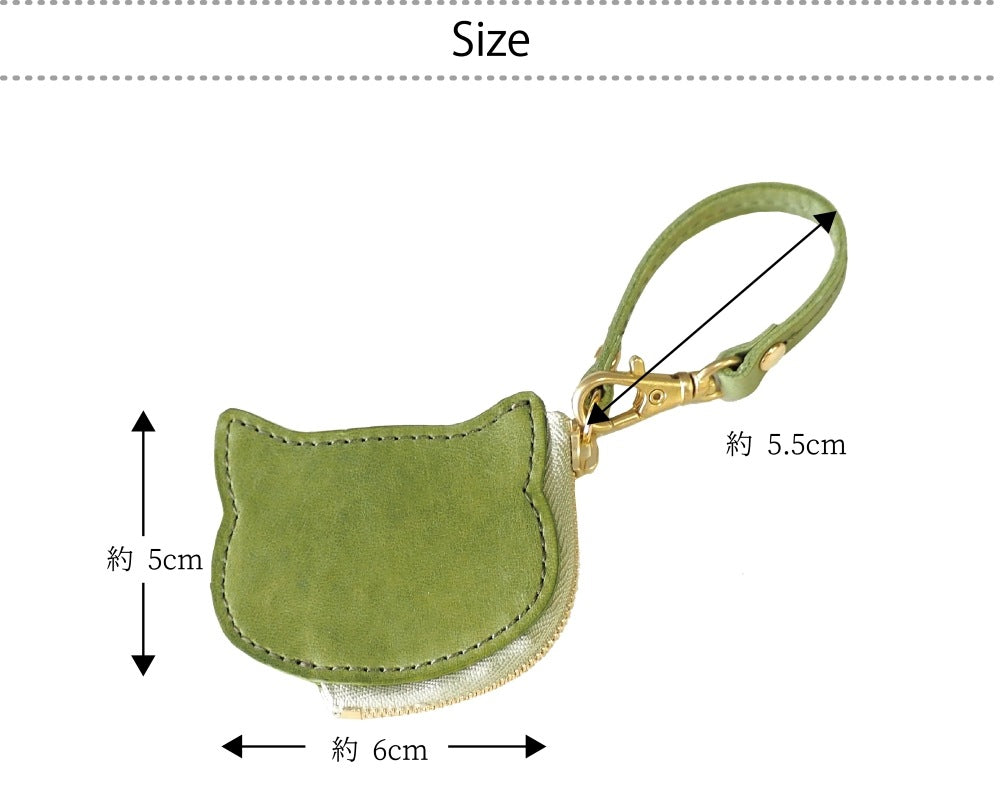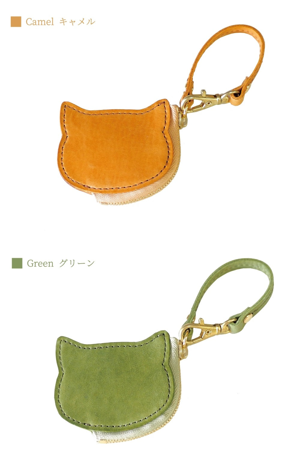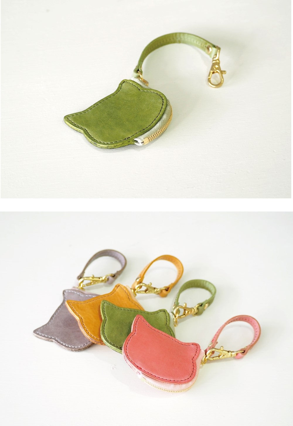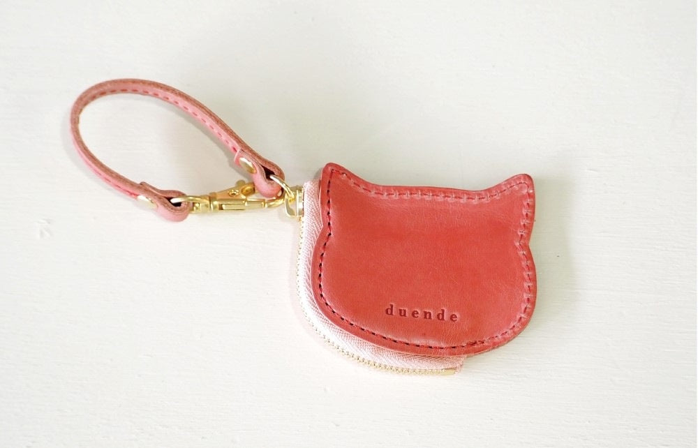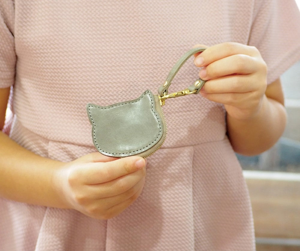 小さなねこの形がキュートな、手のひらサイズの本革ポーチ。