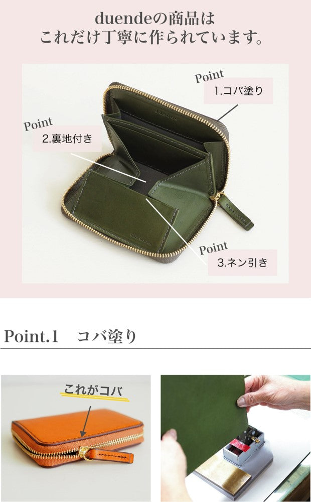 duendeの財布はその革を表にも内側にも贅沢に使用しています。