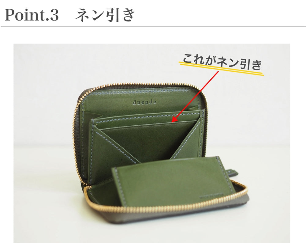 裏地を使用することで革の強度が増し、丈夫な財布になります。