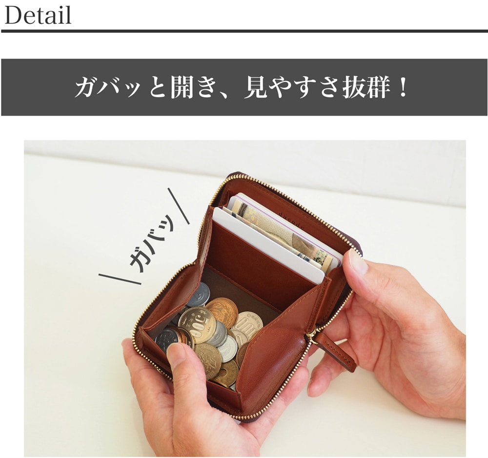 素材の良さを最大限生かし、職人の技術で 丁寧に作り上げたラウンドBOX小銭入れ。