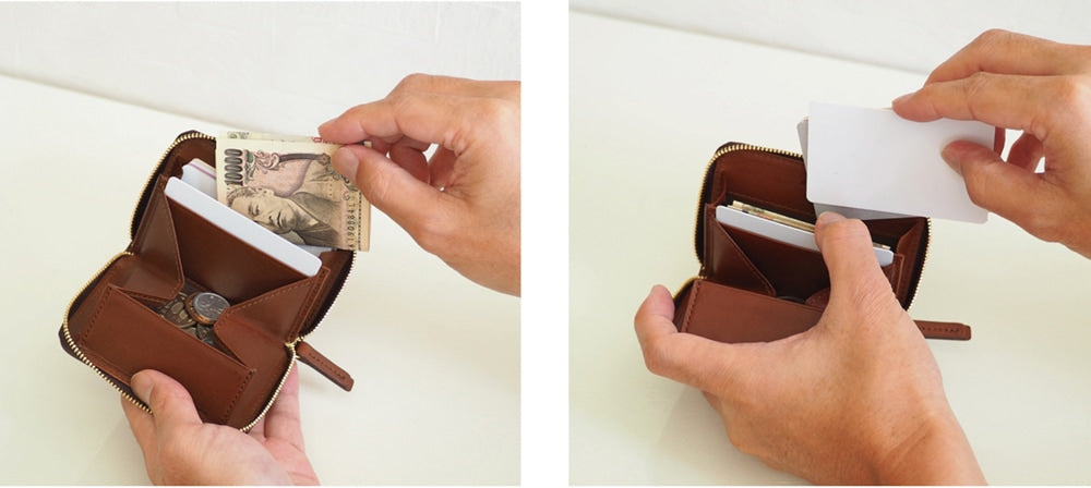 お札やカードも2種類のカードポケットに 仕分けして入れることが可能。