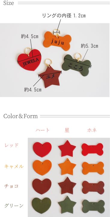 色々な種類の首輪に合わせて迷子札の形や色を選んで購入いただけます。