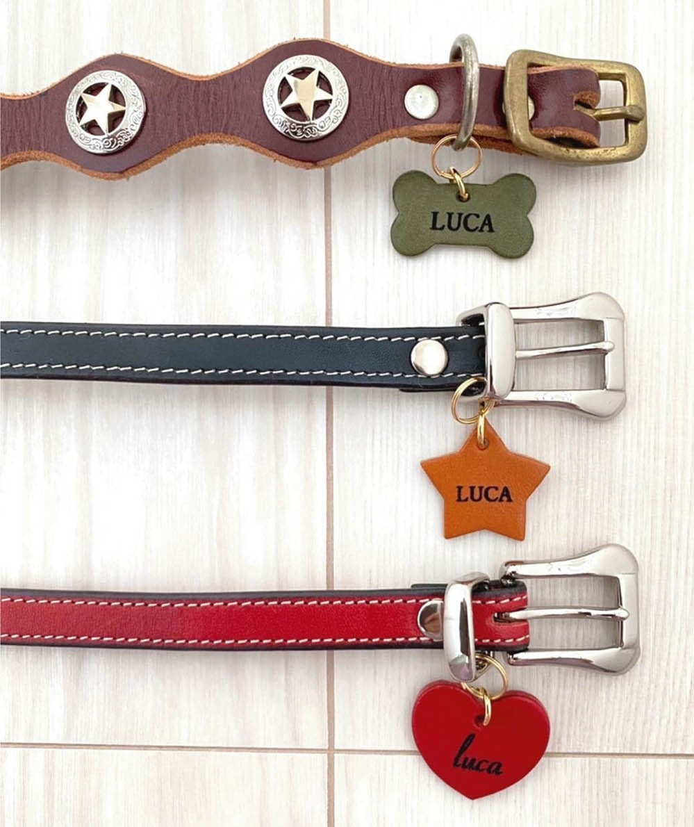 栃木レザーで出来たペット用迷子札。
