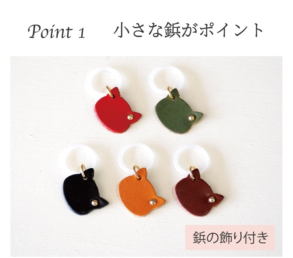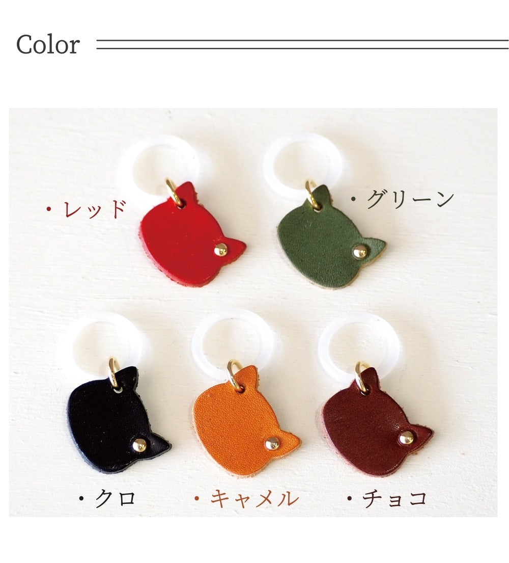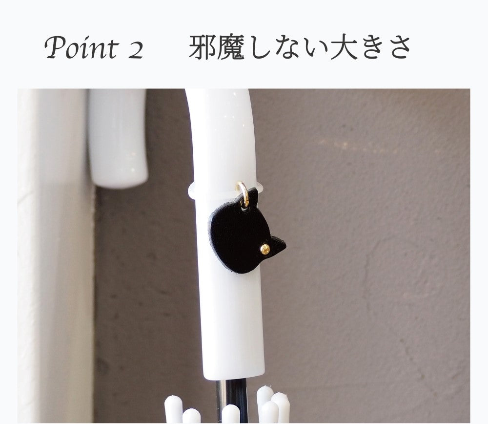 傘の持ち手に付ける、本革「栃木レザー」で仕立てたねこ型チャーム。