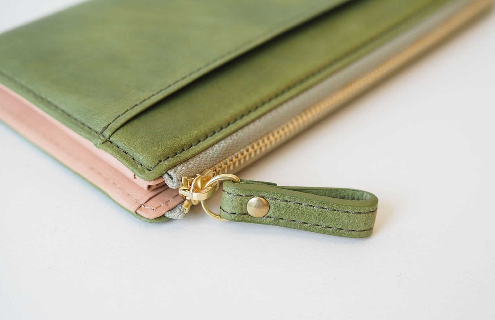ファスナーの色は革より薄い色を使い柔らかい雰囲気に仕上げています。