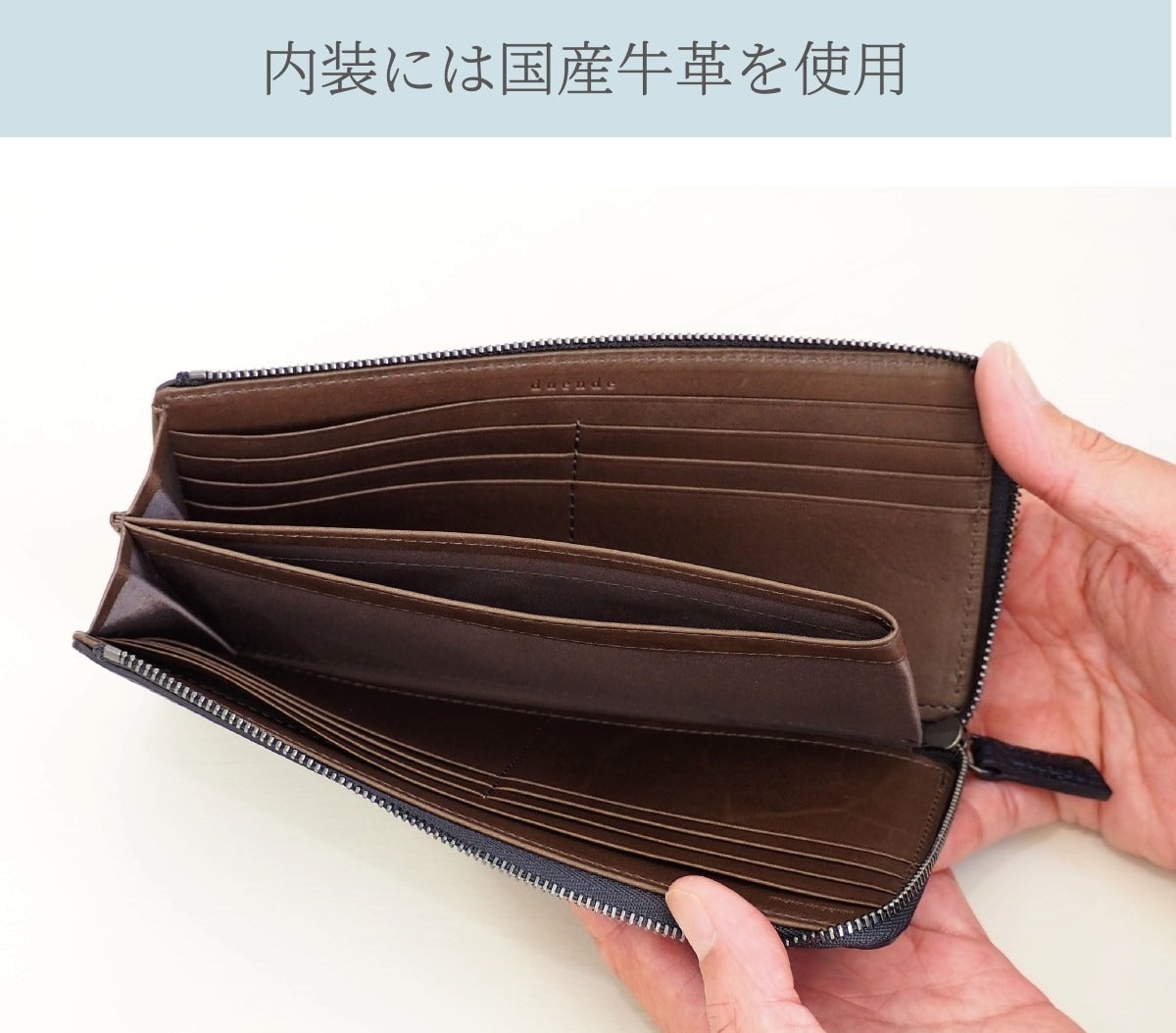 内装には表革とは別の国産牛革を使用しています。