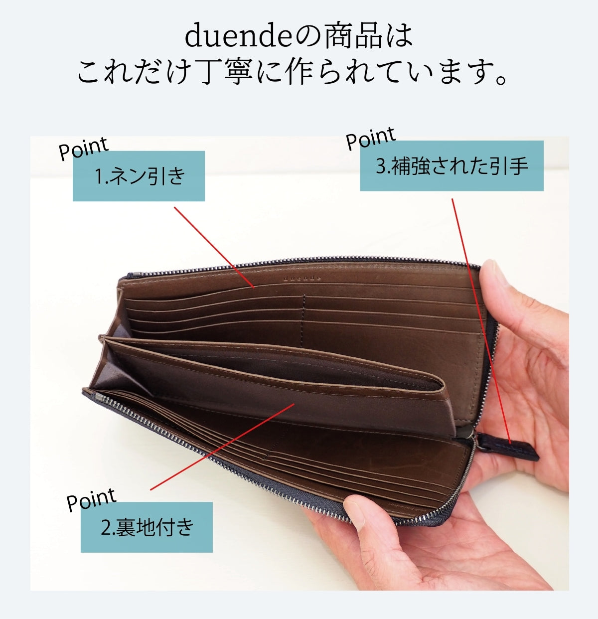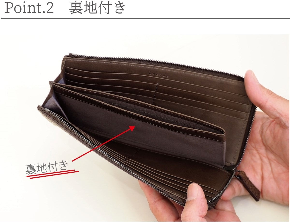 裏地を使用することで革の強度が増し、 丈夫な財布になります。