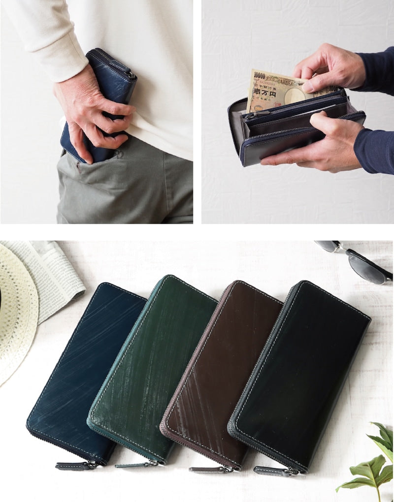 ヨーロッパで馬具として使用される 強い耐久性が特徴の革で作られた長財布。