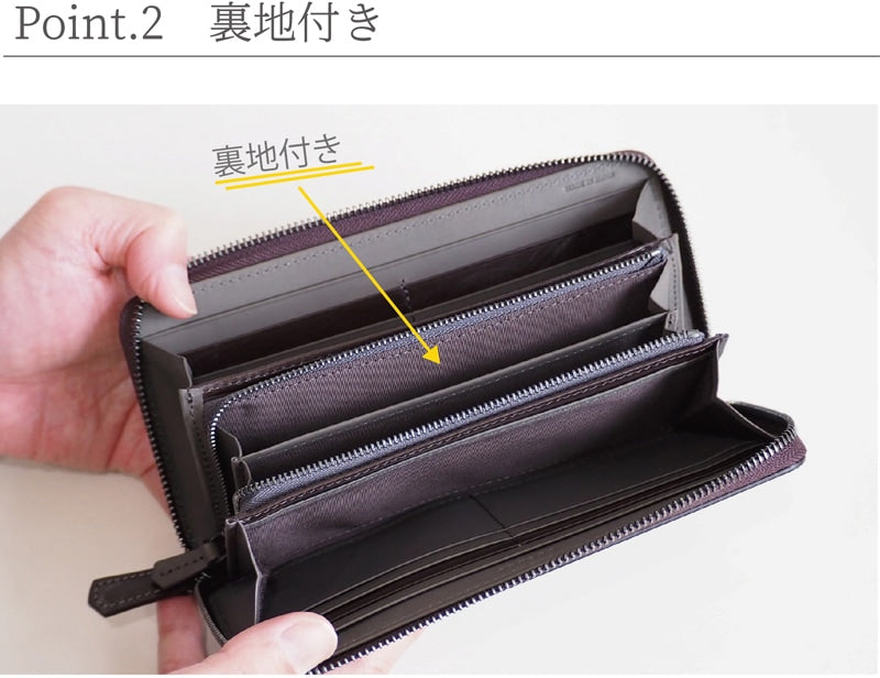 裏地を使用することで革の強度が増し、 丈夫な財布になります。