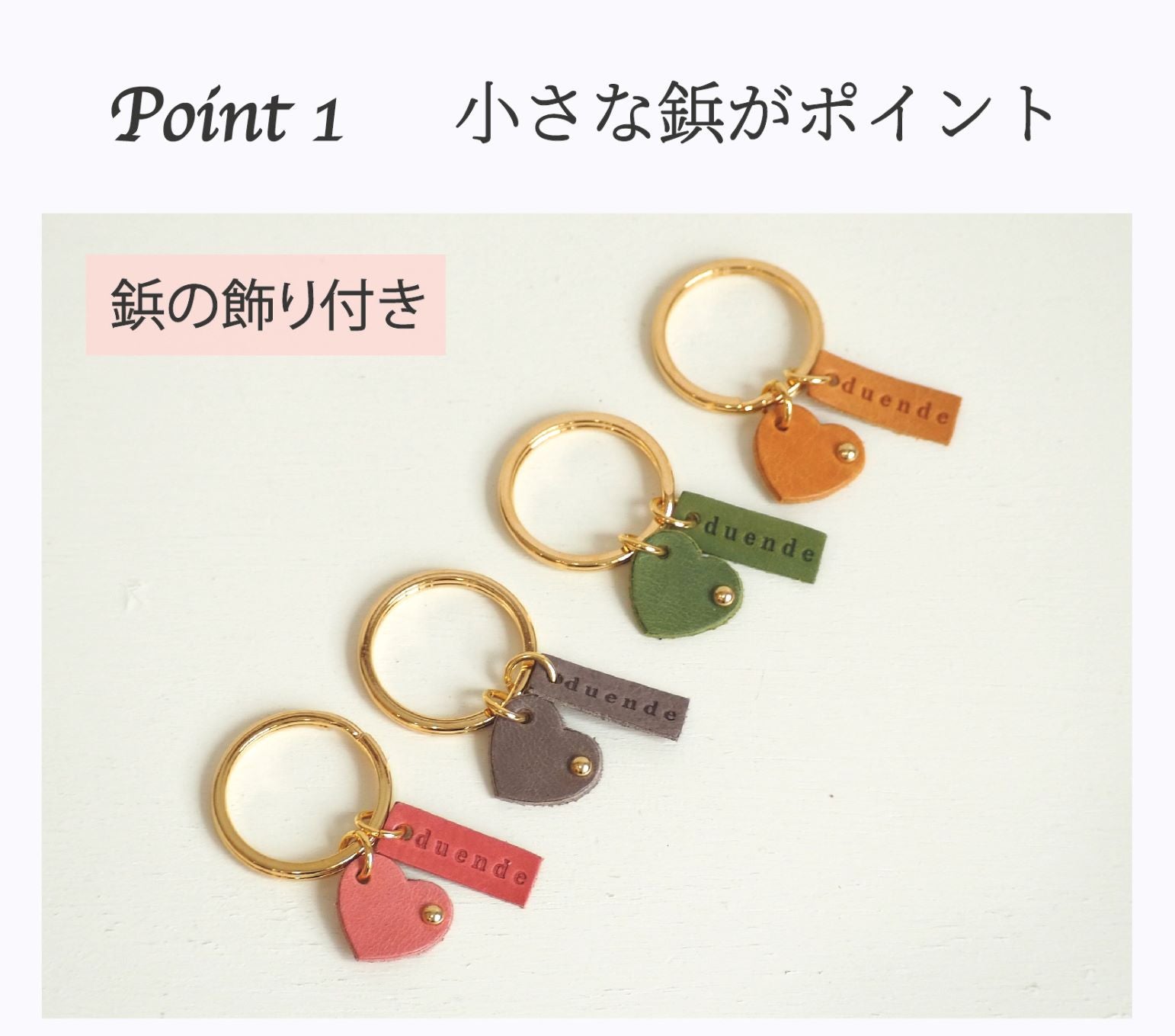 くすんだ色味が可愛いモストロレザーで出来たハート形のキーチャーム。