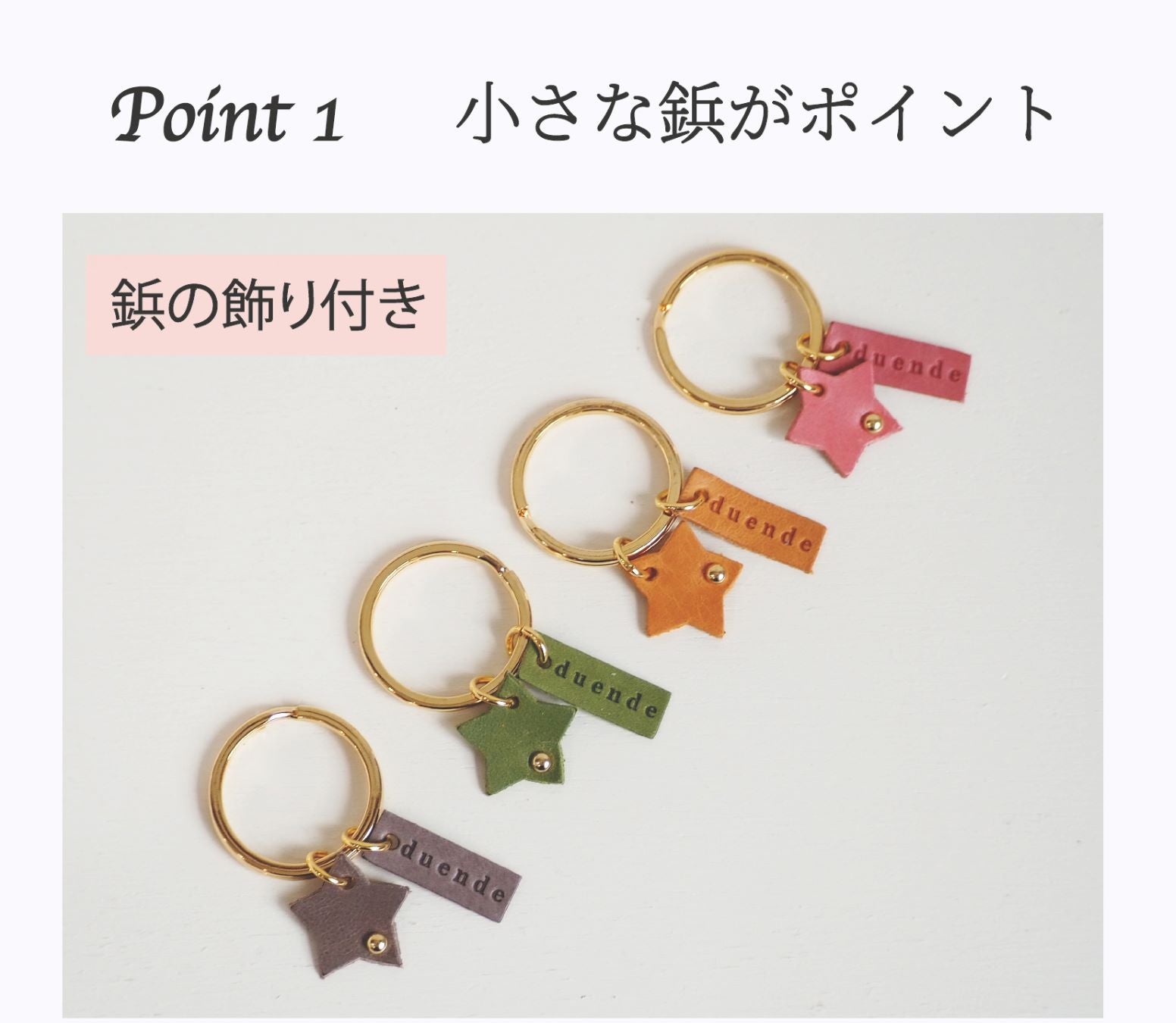 くすんだ色味が可愛いモストロレザーで出来た星形のキーチャーム。