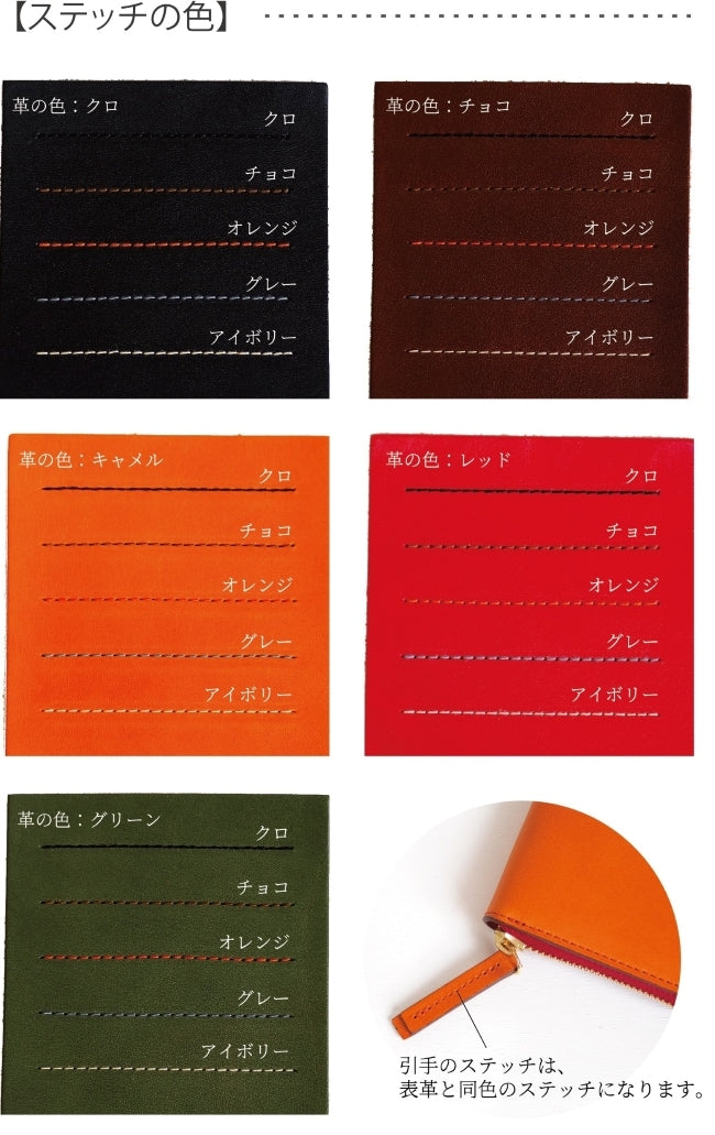 表革の周りを彩るステッチのカラーも5色からお選びいただけます。