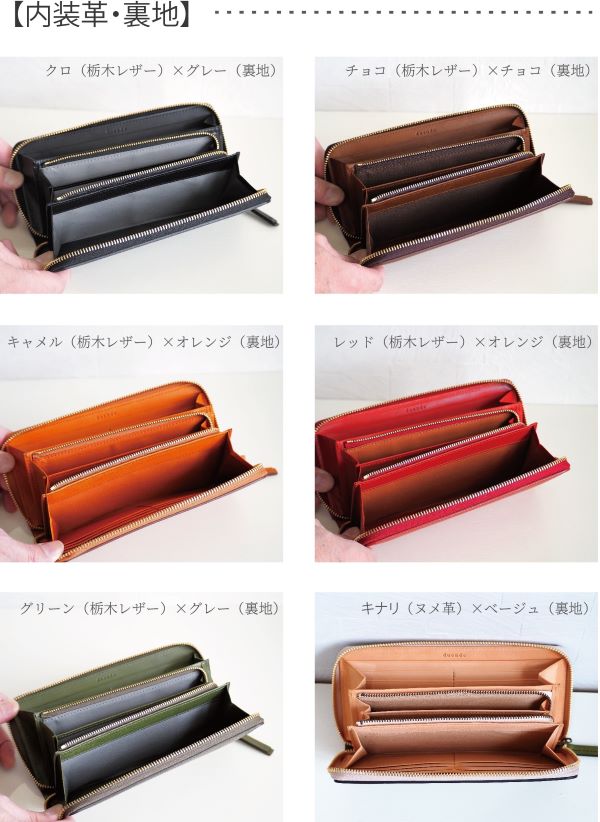 それぞれの革の色に合った裏地とのセットをご用意いたしております。