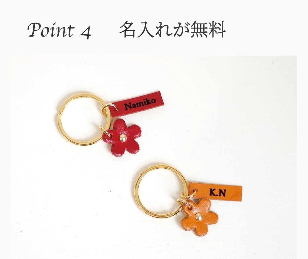 栃木レザーで出来たはな型のキーチャーム。