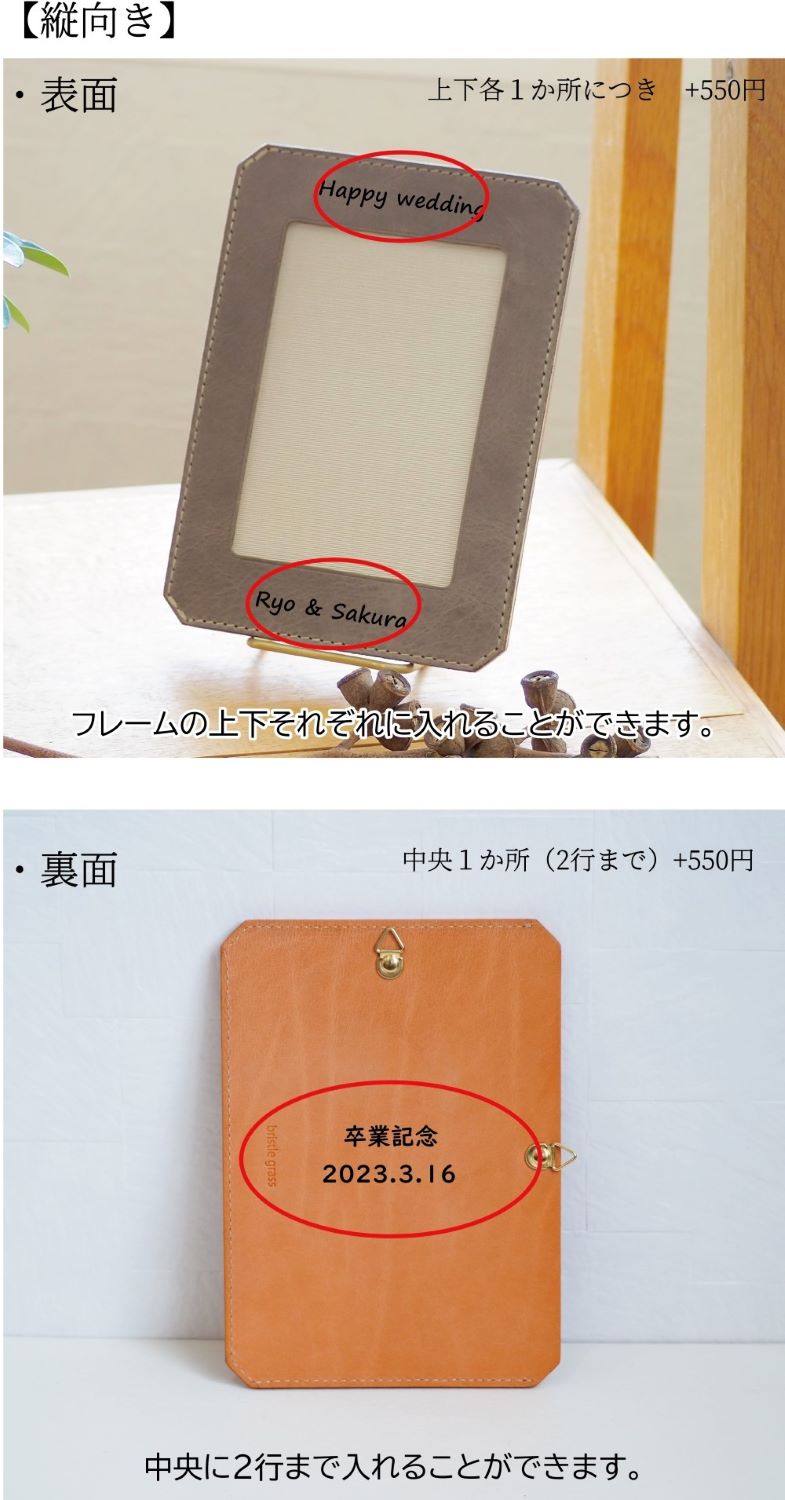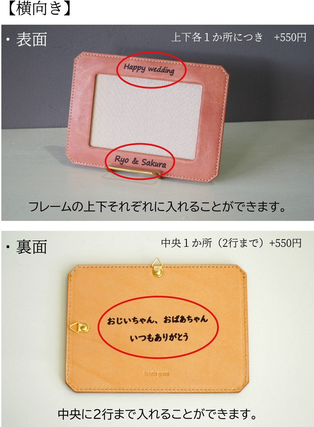 中に入れるの写真やカードに合わせて、フォトフレーム本体へお好きなメッセージを入れることができます。