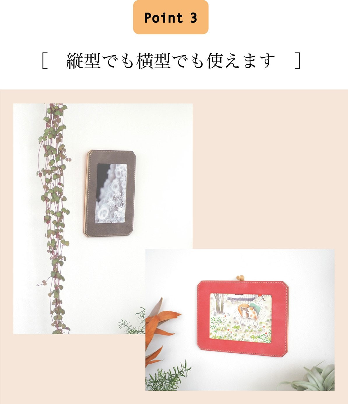 L版の写真やポストカードが入るサイズで手軽に飾れて便利です。