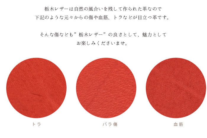 ・天然の革を使用しているため、しわやキズが入っていることや 革の仕上がりによって多少色ぶれする場合がありますが天然素材の革の風合いとしてお楽しみ下さい。