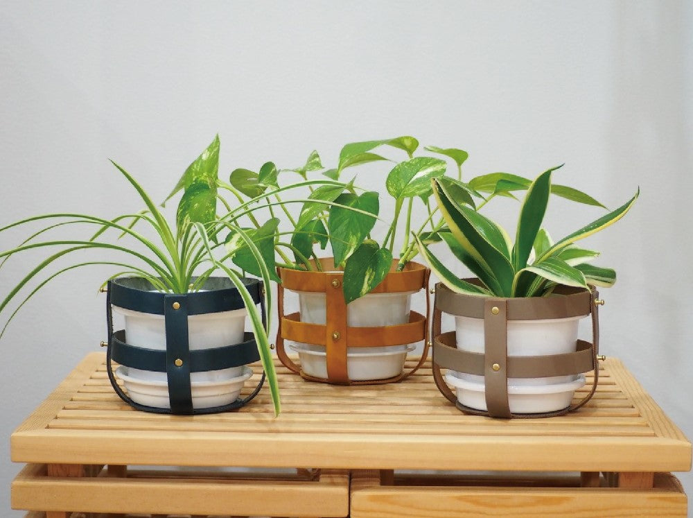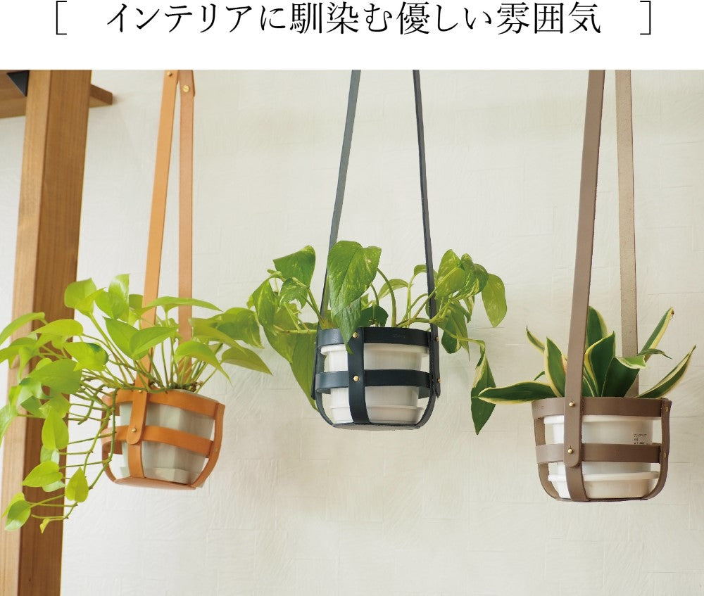吊り革を使用せず本体のみで使用することも可能。 4号サイズまでの植木鉢に対応しております。