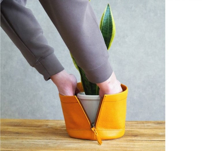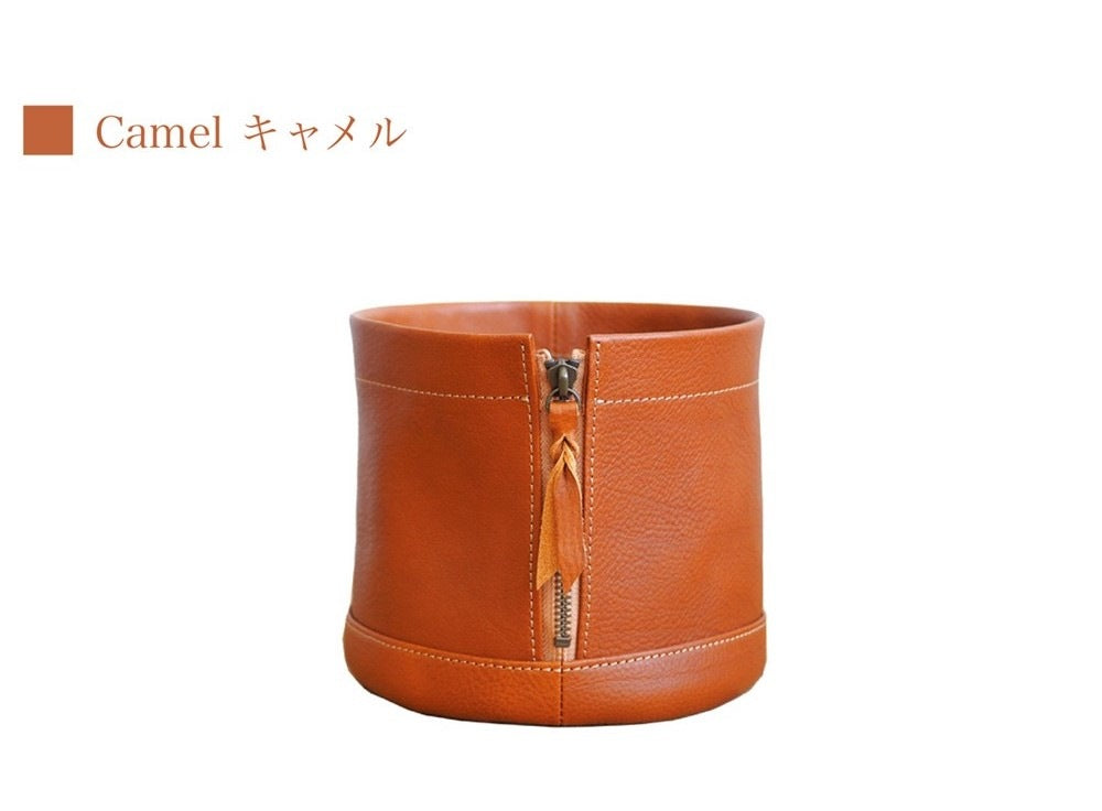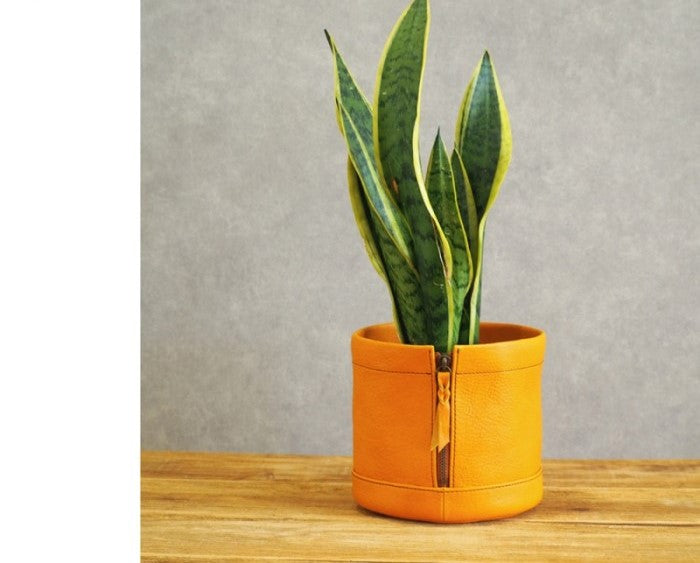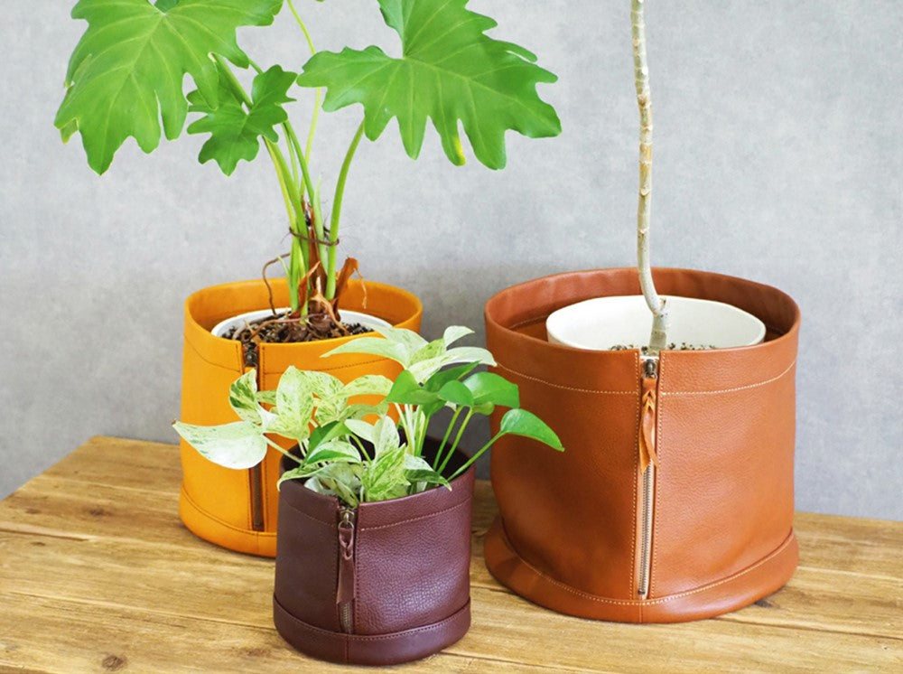 雰囲気のあるイタリアンレザーの鉢カバーは、ひとつあるだけでも存在感がありますが、色違いで並べるとおしゃれ度がUPしておすすめ。