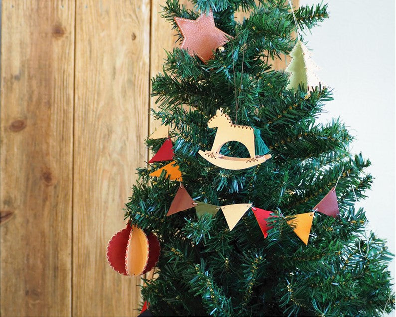 レザーオーナメントと一緒に飾るとぬくもりのあるデコレーションになります。
