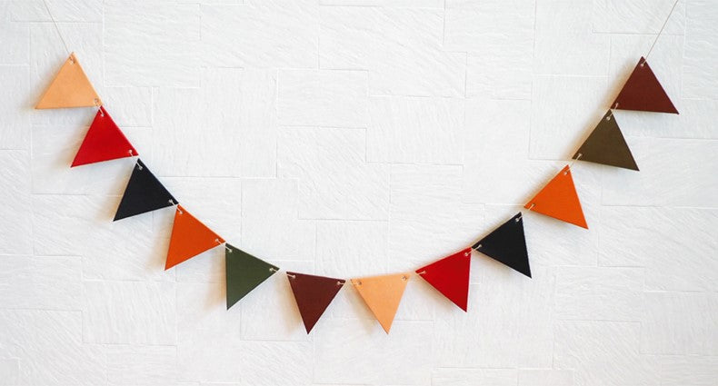 お部屋に少し華やかさが欲しい時に革のガーランドはいかがでしょうか。
