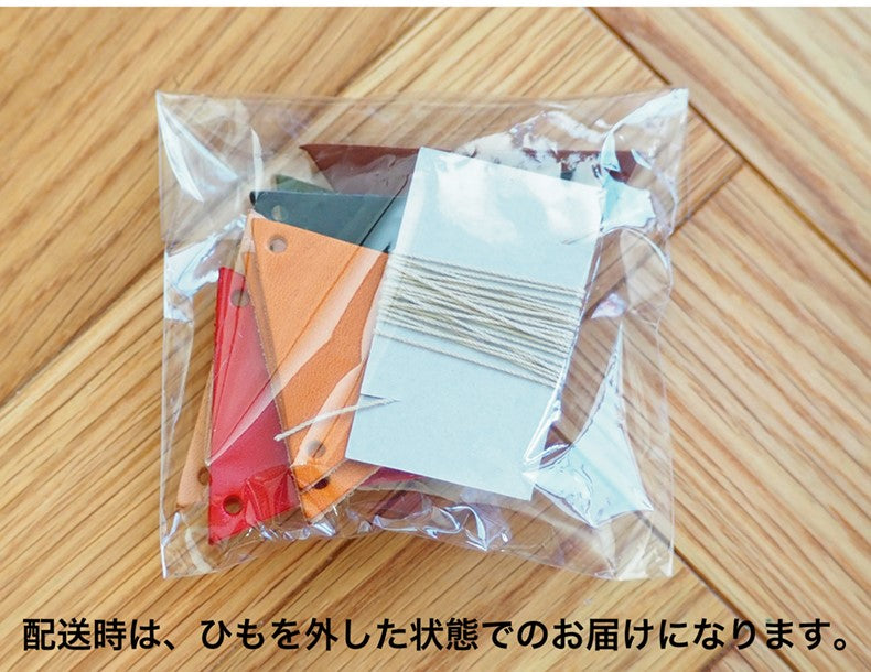 栃木レザーのブラック、チョコ、キャメル、レッド、グリーンの5色とヌメ革1色の6色が2枚ずつ入ったセットになります。 配送時はひもを通していないのでお好きな組み合わせで並べることができます。